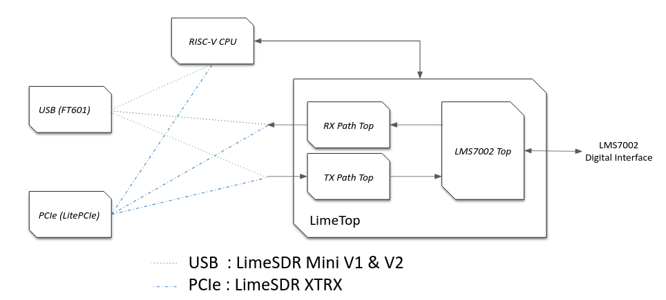 This section provides information about the FPGA gateware used in the LimeSDR family of boards, including interfacing, toolchains, and update mechanisms. For board-specific details (e.g., block diagrams, module breakdowns), refer to the following links. You can continue reading below for generic information applicable to all supported boards or jump to the specific board documentation: