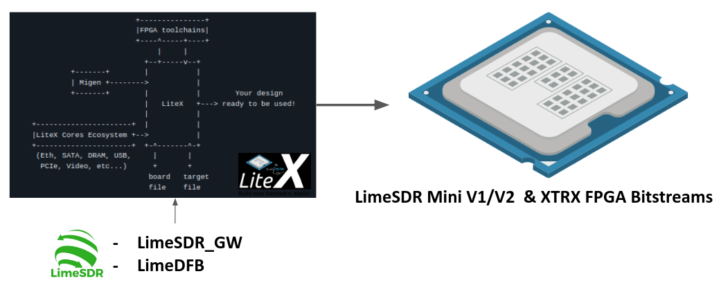 The LimeSDR_GW repository uses LiteX to provide a consolidated gateware base for LimeSDR variants (e.g., Mini V1/V2, XTRX). It replaces scattered HDL projects with a systematic, sustainable LiteX-based SoC for SDR applications.